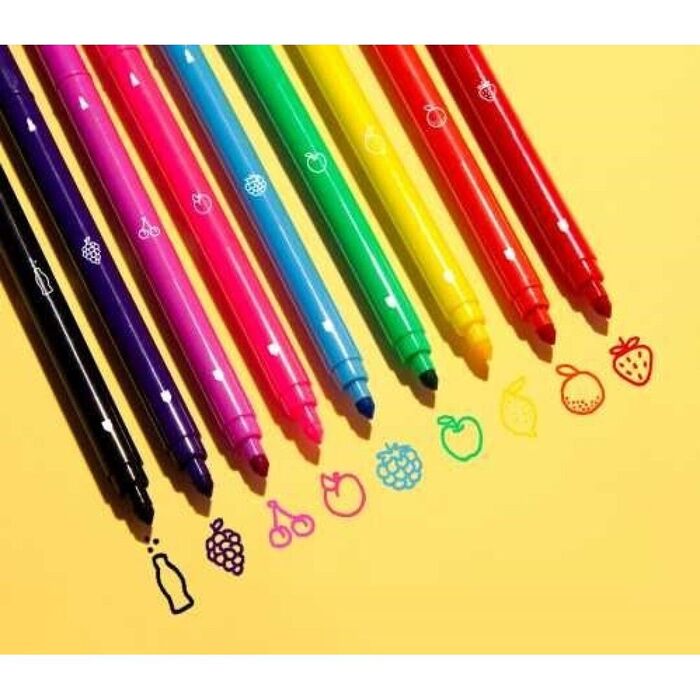 Marcadores perfumados con aromas de frutas dulces y colores ácidos.
