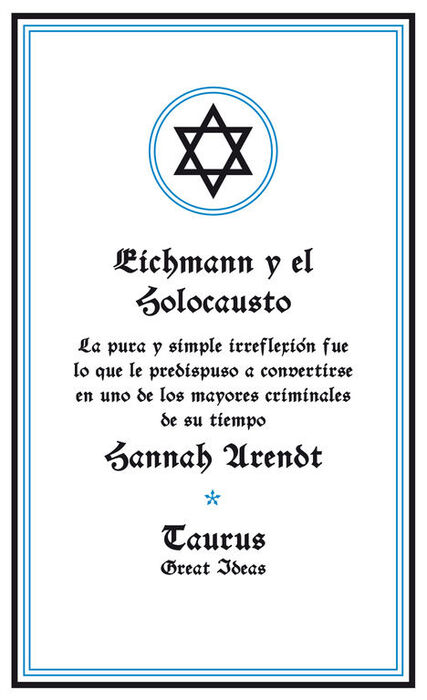 Ideas que han cambiado el mundo.A lo largo de la historia, algunos libros han cambiado el mundo. Han transformado la manera en que nos vemos a nosotros mismos y a los demás. Han inspirado el debate, la discordia, la guerra y la revolución. Han iluminado, indignado, provocado y consolado. Han enriquecido vidas, y también las han destruido.Taurus publica las obras de los grandes pensadores, pioneros, radicales y visionarios cuyas ideas sacudieron la civilización y nos impulsaron a ser quienes somos.Inspirada por el juicio a un burócrata que contribuyó a provocar el Holocausto, esta obra fundamental sobre la banalidad del mal asombró al mundo con su análisis de la ceguera moral de un régimen y de la insistencia de un hombre en ser absuelto de toda culpa porque «sólo cumplía órdenes».Comentarios sobre la colección Great Ideas:
