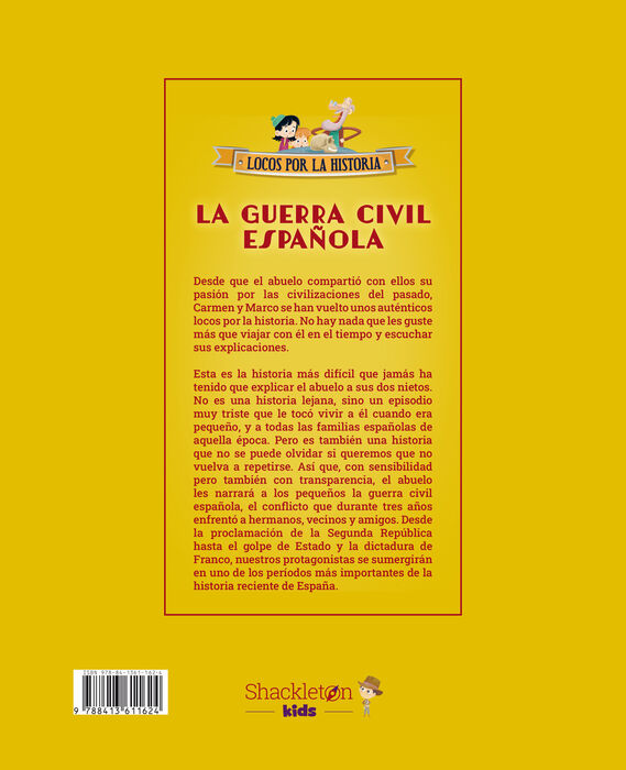 Esta es la historia más difícil que jamás ha tenido que explicar el abuelo Eduardo a sus dos nietos, Carmen y Marco. Porque no es una historia lejana, sino un episodio muy triste que le tocó vivir a él cuando era pequeño, y a todas las familias españolas de aquella época. Pero es también una historia que no se puede olvidar si queremos que no vuelva a repetirse. Así que, con todo el cuidado posible pero también con toda la transparencia, el abuelo les narrará a los pequeños la guerra civil española, el conflicto que durante tres años enfrentó a hermanos, vecinos y amigos.