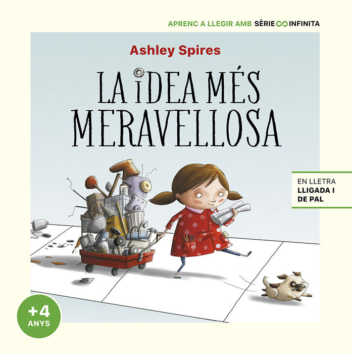 Un llibre sobre la creativitat perfecte per als nens i les nenes que comencen a llegir. Un dia, una nena es desperta amb una magnífica idea i, amb l'ajuda del seu gos i ajudant, decideix fer-la realitat. Sap com serà i com funcionarà, però quan s'hi posa, resulta que és una tasca molt difícil. Mesura, cargola i ajusta una vegada i una altra, però no li surt bé# Finalment es desespera. Però llavors el seu ajudant la convenç de prendre's un descans i tornar-hi més tard amb energies renovades. Una història que descriu a la perfecció els passos del procés creatiu i que ensenya als nens a no desanimar-se, a canviar de perspectiva i provar-ho de nou. Aquest llibre forma part de la col·lecció Sèrie Infinita (+4 anys), que acompanya els lectors en l'aprenentatge de la lectura, un procés que els ajuda a desenvolupar capacitats complexes i els permet descobrir el món i relacionar-s'hi. Per facilitar aquest procés: *Cada pàgina conté el text en lletra lligada i de pal, perquè aprenguin amb el que els hi sigui més fàcil. *Les il·lustracions llampants faciliten la comprensió de la història. A més a més, amb aquest llibre els nens i les nenes: *Aprendran a no desanimar-se davant dels errors. *S'identificaran amb el personatge principal, un exemple per gestionar emocions com la ràbia i l'enuig. *Comprendran que l'esforç i la perseverança tenen recompensa. *Desenvoluparan la imaginació i el pensament creatiu, dues qualitats molt importants en l'aprenentatge de la ciència, la tecnologia, la enginyeria i les matemàtiques.