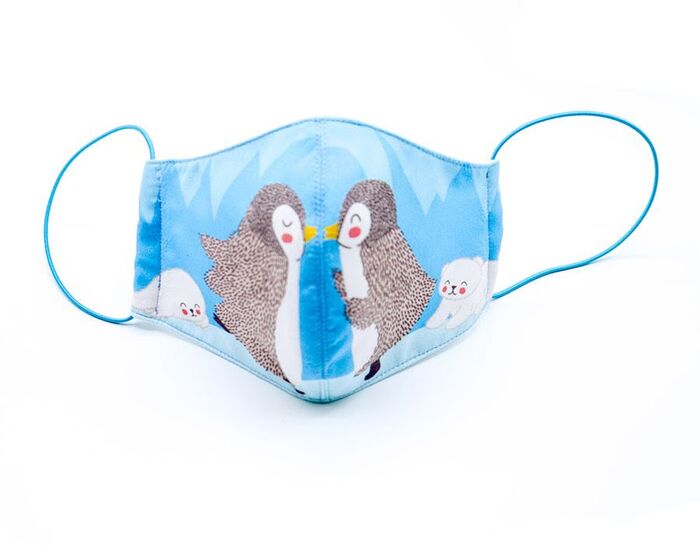 La capa exterior está estampada por sublimación sobre tejido homologado para mascarillas y la capa interior es de 100% de algodón también homologado para mascarillas. Hidrófugo, repelente,antiadherente y transpirable.