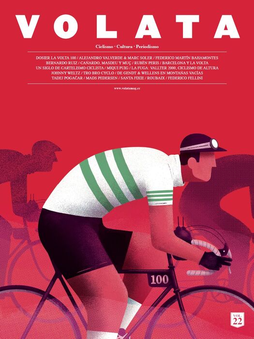 El número 22, el primero de 2020, ya está a la venta. Esta vez dedicamos nuestro dosier central a la Volta Ciclista a Catalunya, que este año tendría que llegar a su edición número cien . Esta efeméride la situaría como la tercera carrera por etapas más antigua del mundo, por detrás del Tour de Francia con 106 ediciones desde 1903 y el Giro d'Italia con 103 ediciones desde 1909. Como un hito así no se consigue todos los días hemos decido rebuscar en su historia centenaria, hablar con sus protagonistas y saber cómo se cocina una vuelta por etapas desde dentro. Así, en este VOLATA#22 encontraréis entrevistas con Federico Martín Bahamontes, Bernardo Ruiz, Alejandro Valverde, Marc Soler, Rubèn Peris director de la Volta desde 200 y reportajes sobre Mariano Cañardo y los años de la Guerra Civil, la relación de la carrera con Barcelona, el cartelismo de la Volta, una ruta ciclista con final en Vallter 2000 y muchos más contenidos. Portada a cargo de Enric Adell / 132 pág