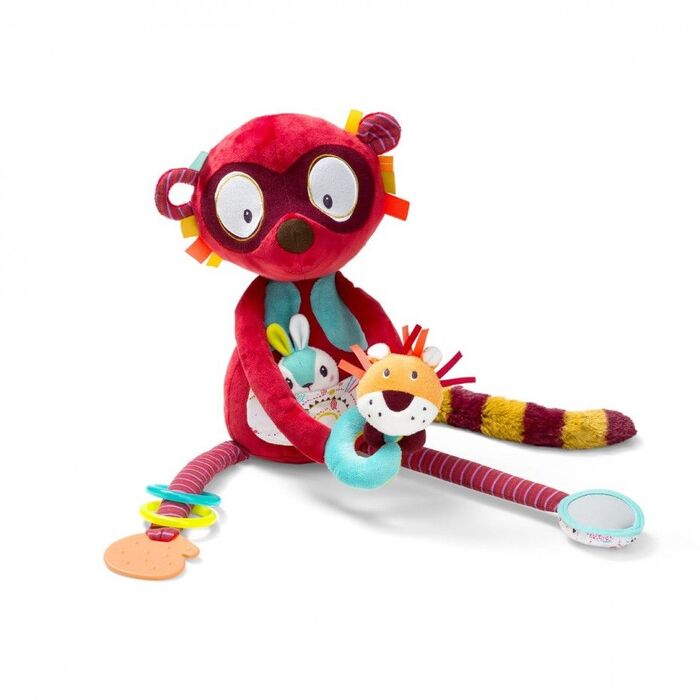 ¡Cómo nos divertimos con Georges, el lémur! A una sola pata, doma al león y se esconde un conejo en el bolsillo. Una pata mordedora, anillos para hacerlos sonar y un espejo en el que mirarse. ¡Georges no escatima en actividades!